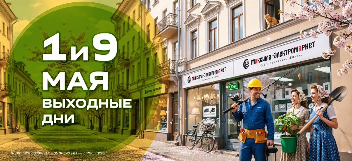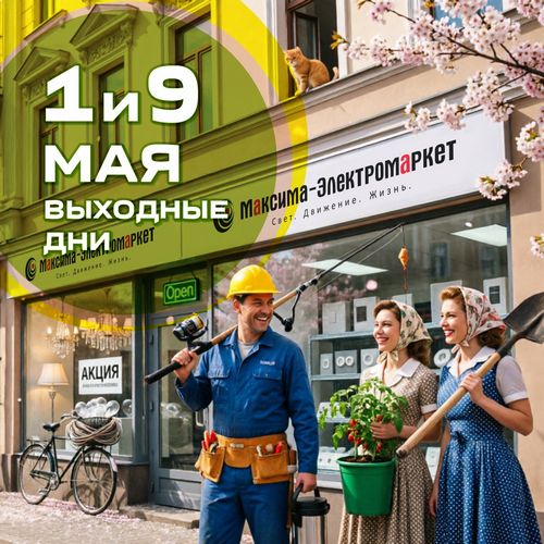 Уважаемые покупатели! 1 и 9 мая Электромаркеты не работают! Всех с наступающими праздниками!