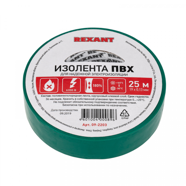 Изолента 19*25 (0,13) зеленая REXANT /5/200