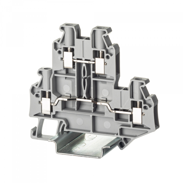 Клемма двухуровневая, винтовой зажим, 4 точки подключения, 4 кв.мм, серая DKC /50
