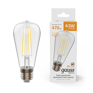 Лампа светодиодная ST64 4,5W 220V Е27 2700К Gauss Basic Filament 470lm 1/10/40