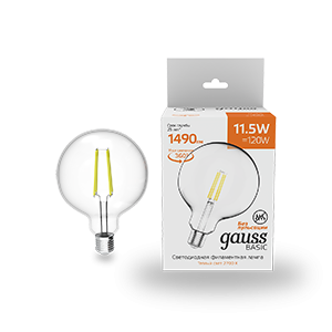 Лампа светодиодная G125 11,5W 220V Е27 2700K 1490lm Gauss Basic Filament 1/20