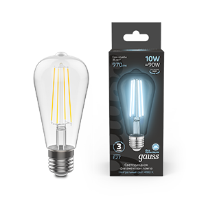 Лампа светодиодная ST64 10W 220V 4100К Е27 Filament Gauss 1/10/40