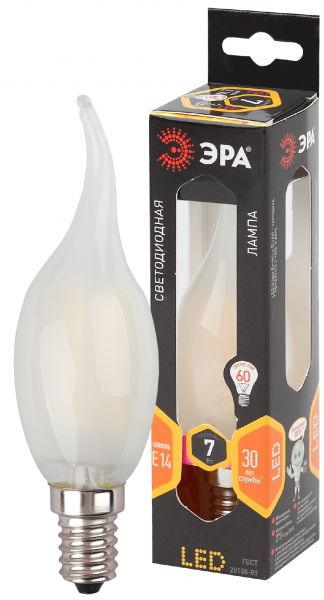 Лампа светодиодная BXS 7W 230V 2700K E14 Filament frost ЭРА 10/100