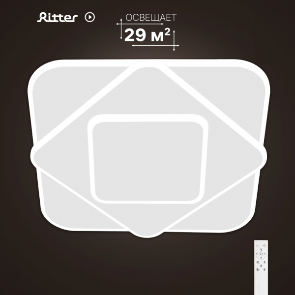 Люстра потол LED димм 52Вт ДУ 3 режима 533x533x80мм 17м² белый, Ritter RIETI