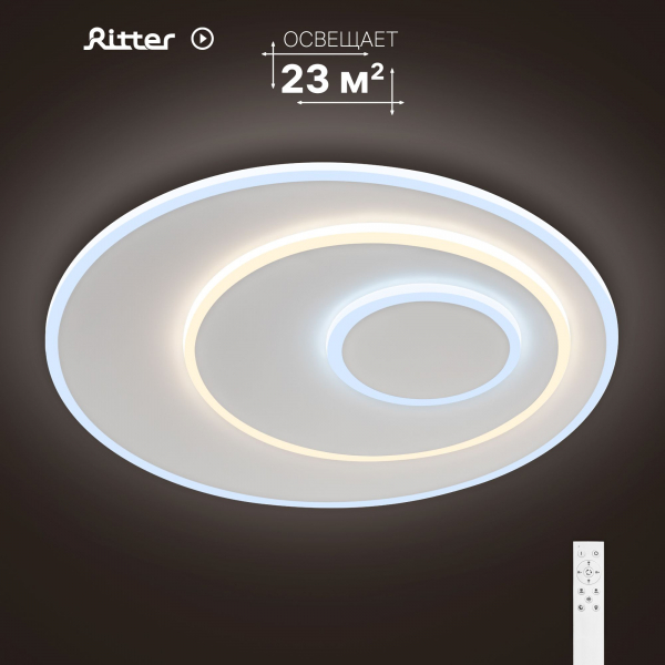 Люстра потол LED димм 108Вт с ДУ, 3 режима, Ø570х135, 33м², белый Ritter NUVOLA