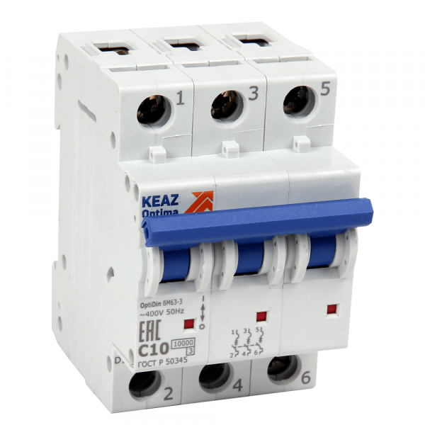 Выключатель автоматический 3-полюсный (3P) 6А хар. L 6кА КЭАЗ (Курский электроаппаратный завод) OptiDin BM63