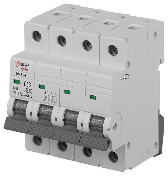 Выключатель автоматический 4-полюсный (4P) 63А хар. C 4.5кА ЭРА (Энергия света)