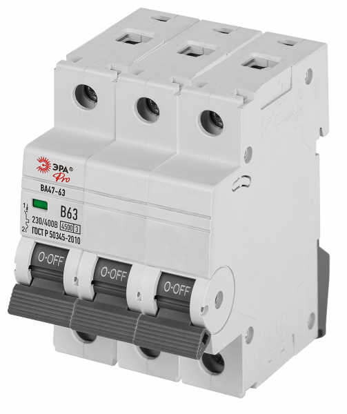 Выключатель автоматический 3-полюсный (3P) 63А хар. D 4.5кА ЭРА (Энергия света)