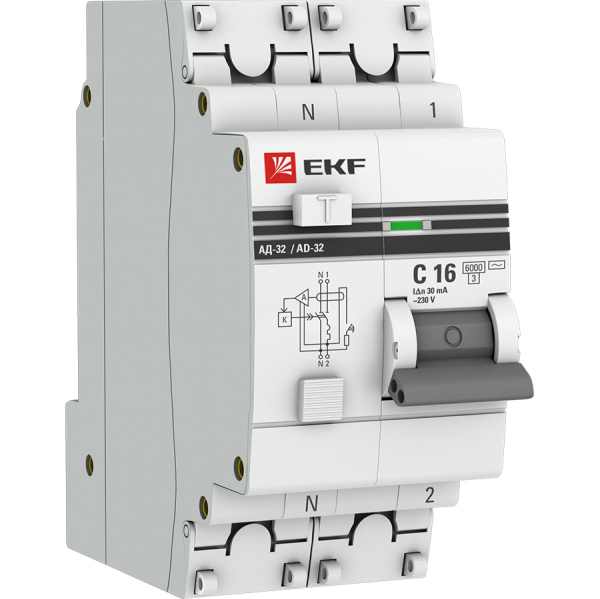 Дифференциальный автомат (АВДТ) 2-полюсный (1P+N) 16А 300мА характеристика C AC PROxima EKF