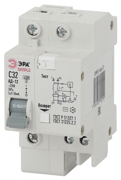 Дифференциальный автомат АД-2 6А 10мА C электронный тип AC защита 270В 4,5кА EKF PROxima /32