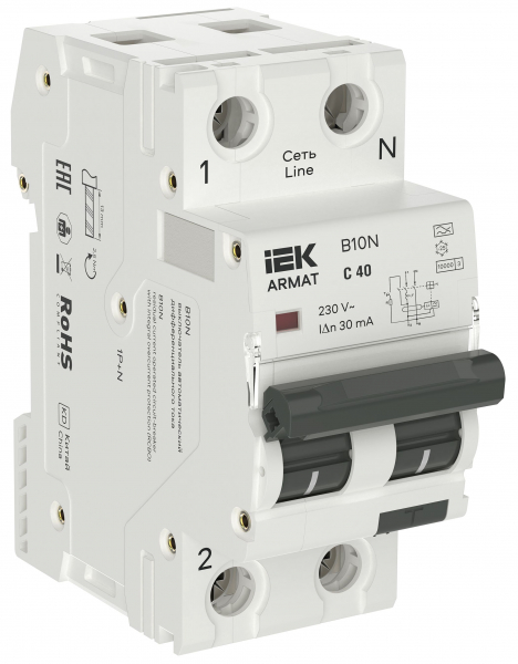 Дифференциальный автомат АВДТ B10N 40A/30мА (хар-ка C, тип A, эл-мех, 36мм) 10кА ARMAT IEK /6