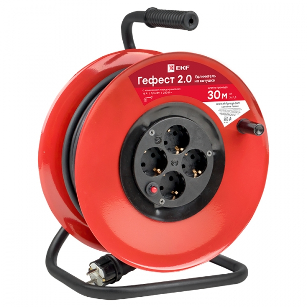 Удлинитель на катушке 4 места пластик H07RN-F 30м 3х2мм² IP20 с рамой для переноски EKF