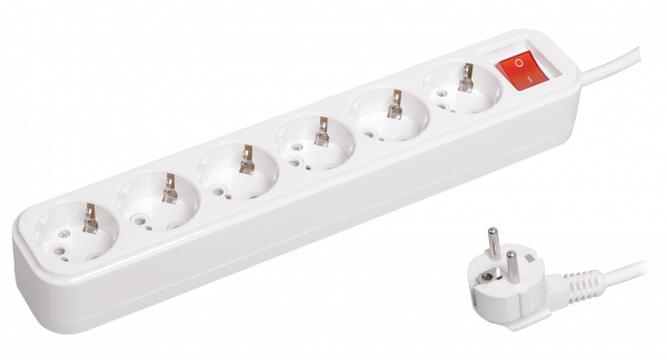 Удлинитель 6 мест 16А пластик белый шнур 1.5м ПВС IP20 с выключателем IEK (ИЭК) Classic