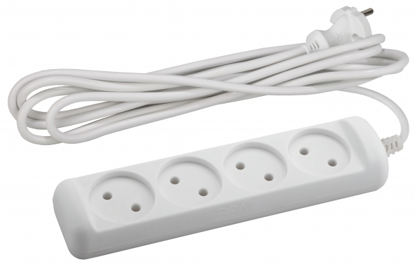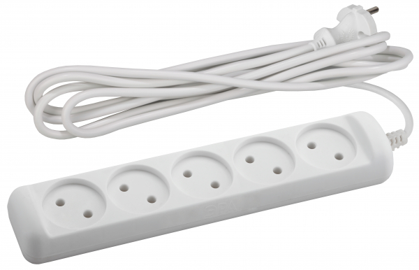 Удлинитель 4 места 10А пластик белый шнур 5м ПВС IP20 ЭРА (Энергия света) Удлинители