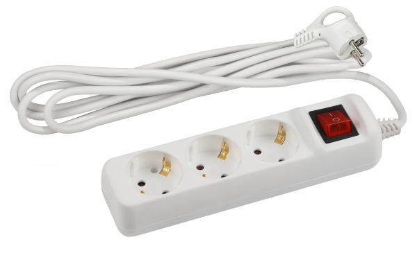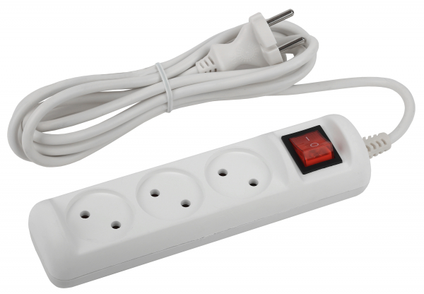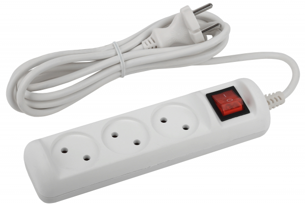 Удлинитель 3 места 10А пластик белый шнур 3м ПВС IP20 с выключателем ЭРА (Энергия света) _