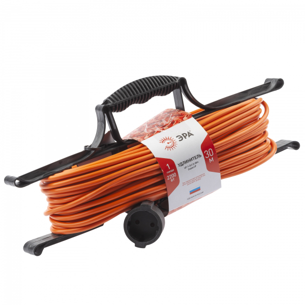Удлинитель 1 место 10А оранжевый шнур 30м ПВС IP44 с крышками ЭРА (Энергия света)