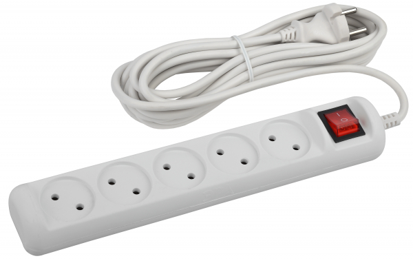 Удлинитель 5 мест 10А пластик белый шнур 5м ПВС IP20 с выключателем ЭРА (Энергия света) _