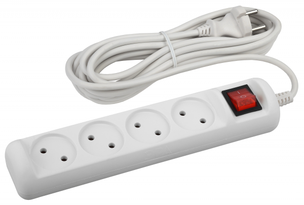 Удлинитель 4 места 10А пластик белый шнур 5м ПВС IP20 с выключателем ЭРА (Энергия света) _