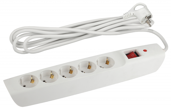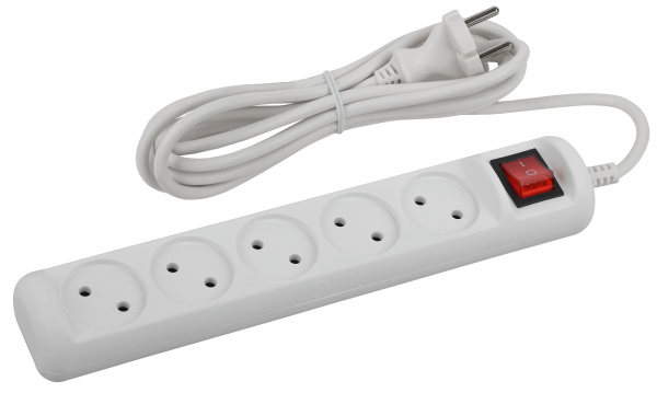 Удлинитель 3 места 10А пластик белый шнур 5м ПВС IP20 с выключателем ЭРА (Энергия света) _