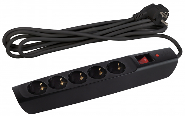 Удлинитель - сетевой фильтр 5 мест 10А пластик черный шнур 4м ПВС IP20 ЭРА (Энергия света)