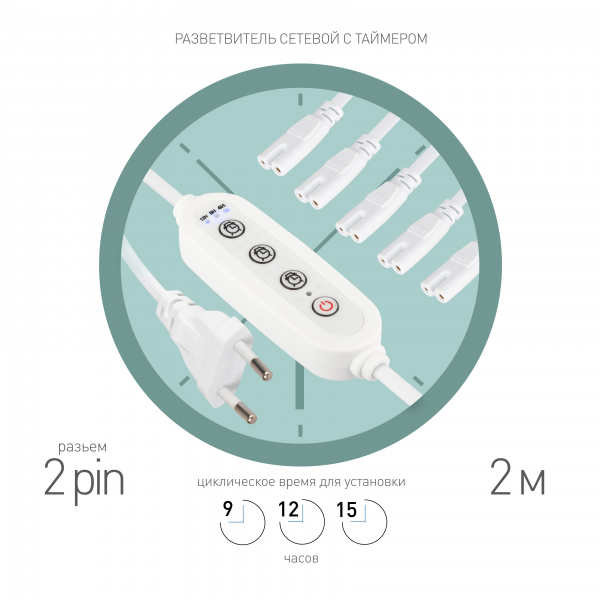 Разветвитель сетевой для фитолампы ЭРА FITO-Holder C7 с таймером для 5 светильников