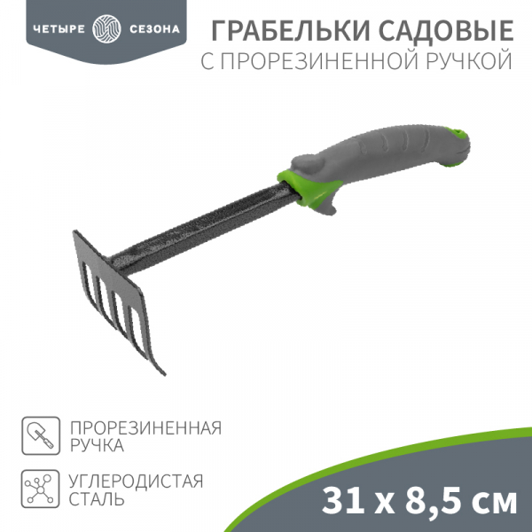 Грабельки садовые с прорезиненной ручкой, 31х8,5см ЧЕТЫРЕ СЕЗОНА
