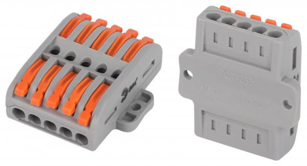 Клемма ЭРА NO-225-401 проходная с монтажной площадкой 222-2415Р с рычагами 5 полюсов 0.08-2.5/4 мм2