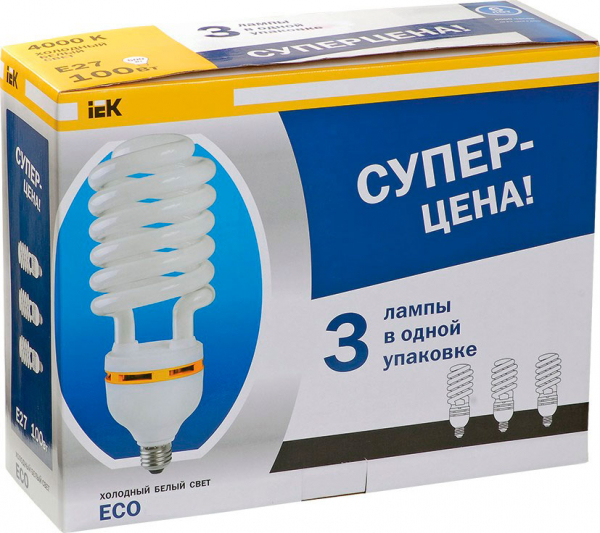 Лампа энергосберегающая (КЛЛ интегрированная) «спираль» E27 100Вт 220-230В нейтральная холодно-белая 4000К/840 11000ч IEK