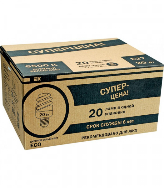 Лампа энергосберегающая (КЛЛ интегрированная) «спираль» E27 65Вт 220-230В холодная дневного света 6500К/865 8000ч IEK