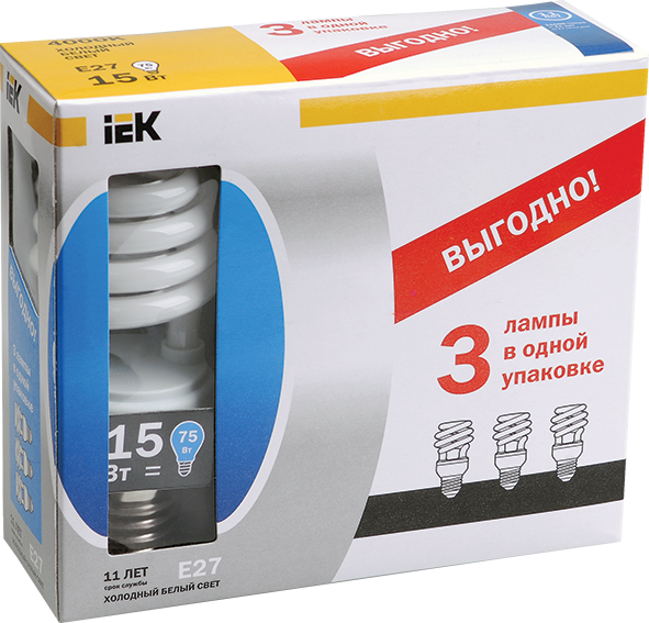 Лампа энергосберегающая (КЛЛ интегрированная) E27 15Вт 220-230В нейтральная холодно-белая 4000К/840 8000ч IEK