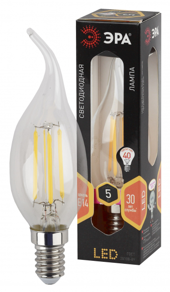 Лампа светодиодная (LED) «свеча на ветру» d35мм E14 270° 5Вт 170-265В прозрачная тепло-белая 2700К ЭРА (Энергия света)