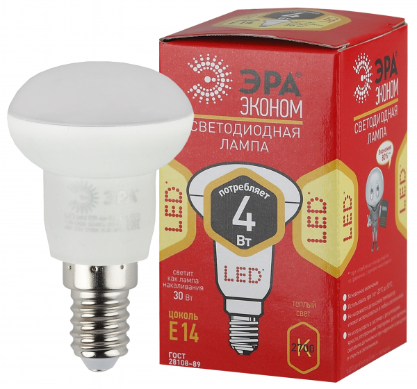 Лампа светодиодная (LED) с отражателем d39мм E14 270° 4Вт 220-240В матовая тепло-белая 2700К ЭРА (Энергия света)