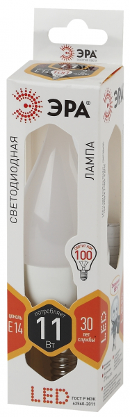 Лампа светодиодная (LED) «свеча на ветру» d37мм E14 270° 11Вт 170-265В матовая тепло-белая 2700К ЭРА (Энергия света)