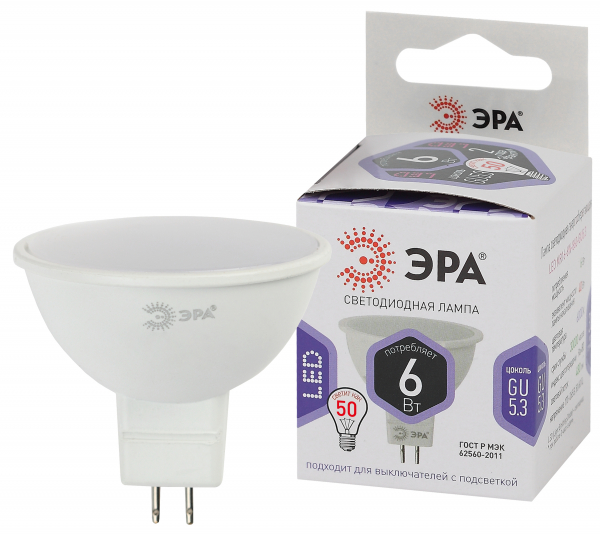 Лампа светодиодная (LED) с отражателем GU5.3 6Вт 220-240В матовая 6000К ЭРА (Энергия света)
