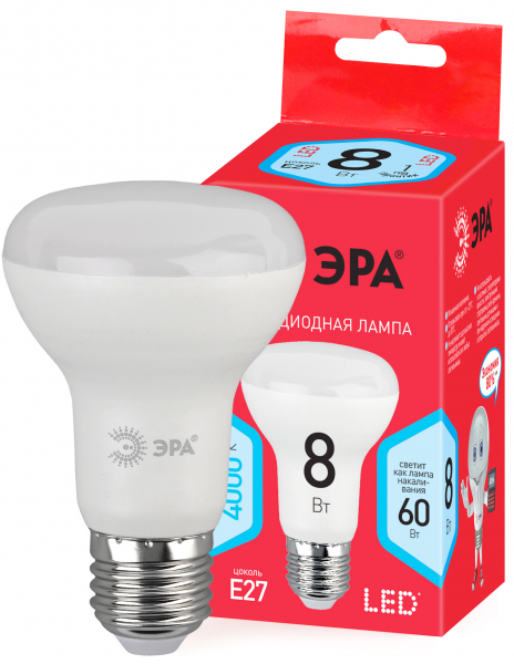 Лампа светодиодная (LED) с отражателем d63мм E27 270° 8Вт 220-240В матовая 4000К ЭРА (Энергия света)
