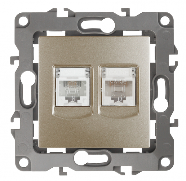Мех-м с накладкой для подкл. ср-в связи и выч. техники с/у rj11+rj45 пластик шампань декор d 1/1 IP20 ЭРА 12