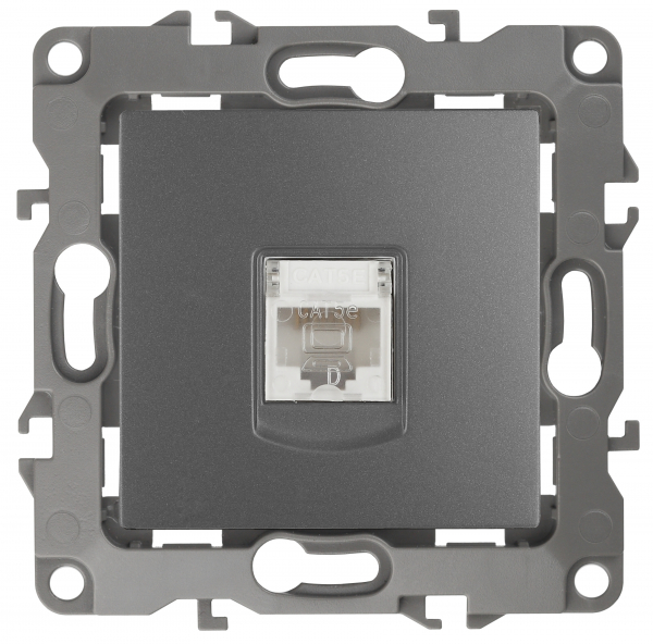 Мех-м с накладкой для подкл. ср-в связи и выч. техники с/у rj45 пластик антрацит декор d 1/1 IP20 ЭРА 12
