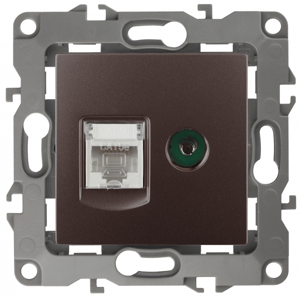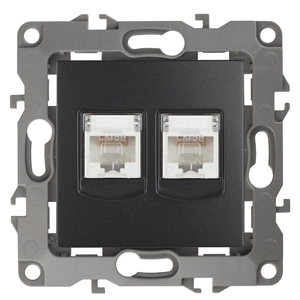 Мех-м с накладкой для подкл. ср-в связи и выч. техники с/у rj11+rj45 пластик антрацит декор d 1/1 IP20 ЭРА 12