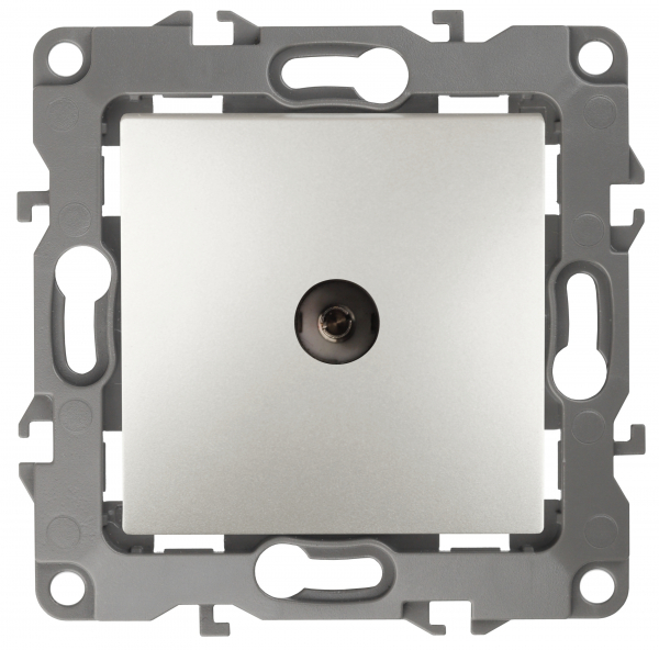 Одиночная розетка 1 выход. мех-м с накладкой tv 2400МГц скрыт. уст-ки в распор и винтами алюминий декор d 1/1 12 ЭРА