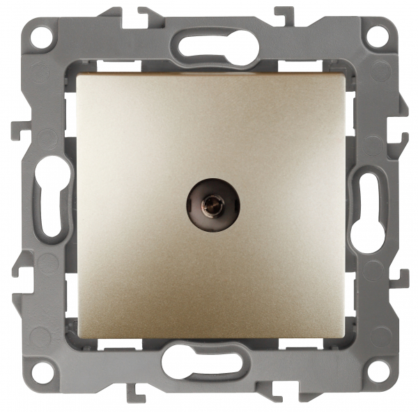 Одиночная розетка 1 выход. мех-м с накладкой tv 2400МГц скрыт. уст-ки в распор и винтами шампань декор d 1/1 12 ЭРА