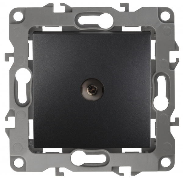Одиночная розетка 1 выход. мех-м с накладкой tv 2400МГц скрыт. уст-ки в распор и винтами графит декор d 1/1 12 ЭРА