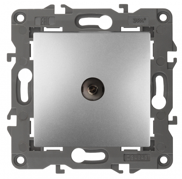 Проходная розетка 1 выход. мех-м с накладкой tv 2400МГц скрыт. уст-ки в распор и винтами алюминий Elegance ЭРА