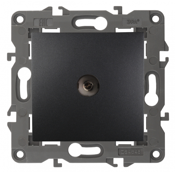 Проходная розетка 1 выход. мех-м с накладкой tv 2400МГц скрыт. уст-ки в распор и винтами антрацит Elegance ЭРА