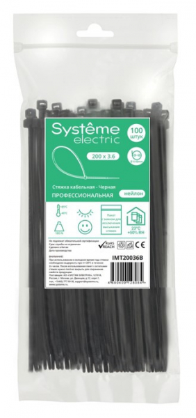 Стяжка кабельная 200х3.6 черная (100 шт.) Systeme Electric /100