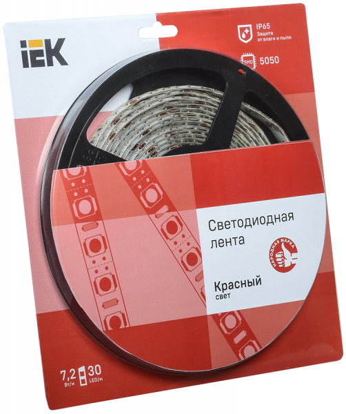 Световая лента со светодиод. (LED) 30 ламп/м 7Вт/м цвет красный 12В DC самоклеющ-ся IP65 IEK (ИЭК)