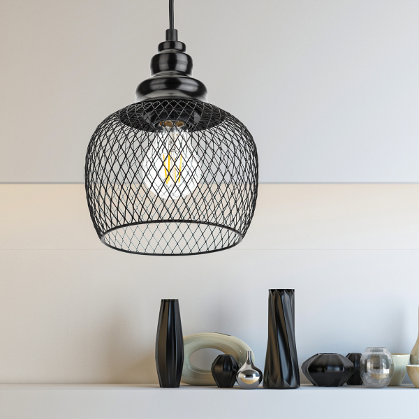 Светильник подвес.max60W 220V IP20 E27 d170 мм, черный металл ЭРА PL8 BK(10/180)