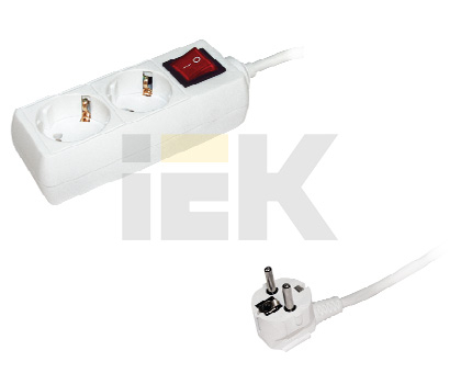 Удлинитель 2 места 16А пластик белый шнур 3м ПВС IP20 IEK (ИЭК) _