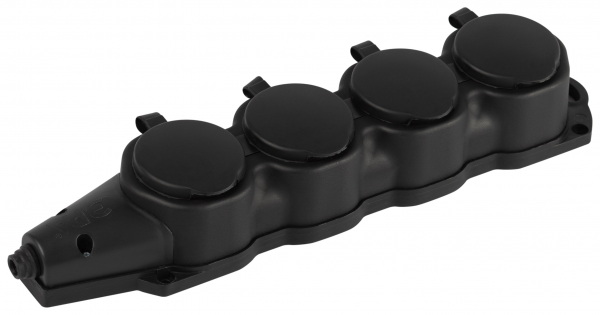 Колодка (розеточный блок) 4 места 16А резина черный БЕЗ КАБЕЛЯ IP44 с крышками ЭРА (Энергия света)