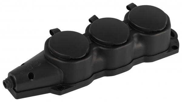 Колодка (розеточный блок) 3 места 16А резина черный БЕЗ КАБЕЛЯ IP44 с крышками ЭРА (Энергия света)