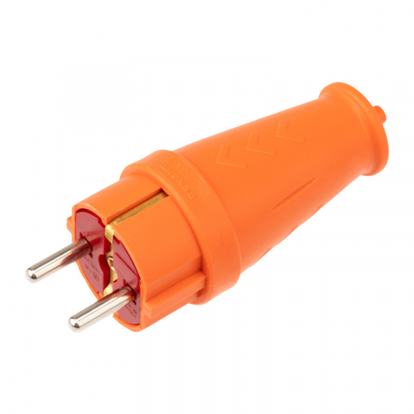 Вилка влагозащищенная прямая COMPACT, с/з, 16А, IP44, каучук, оранжевая REXANT